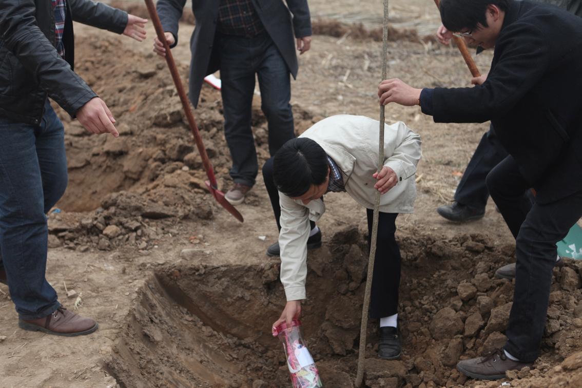 活动伊始,我校党委书记王志凯对本次活动发表重要讲话。他指出,建设生态文明对于中国来说,不是今天才有的自觉,而是长期以来就有的行动。十八大报告以独立篇章系统论述“大力推进生态文明建设”。大力倡导“前人种树、后人乘凉”的绿色发展之路。现在我们学校的新区正在建设当中,随着同学们种下的树苗,撒下的希望,未来的新区必将成为一片美丽、祥和而又充满希望的校园。随后,王志凯书记与学生代表杜佳一起将同学们对于我们学院的祝福埋在第一棵树苗种下,希望我们同学们的愿望可以像这些树苗一样茁壮成长。