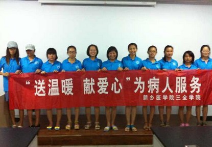 7月中旬,新乡医学院三全学院生物技术专业多名学生组建以“感恩”为主要思想的小组,在洛阳市栾川县的医院参加导医活动。