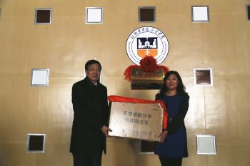 上午10点,仪式正式开始。首先,校党委书记王志凯致欢迎辞并详细介绍了金年会的基本情况,谢龙旭副总裁对凯普公司的发展历史、获得荣誉、科研平台及品牌建设等方面作了简单介绍。王洪兴副院长和谢龙旭副总裁隆重为“协同创新中心”揭牌,王金文副书记和黄清桂总监为凯普班的学生代表授予凯普胸牌。最后,凯普公司向我校捐赠了4台价值65万元的导流杂交仪。