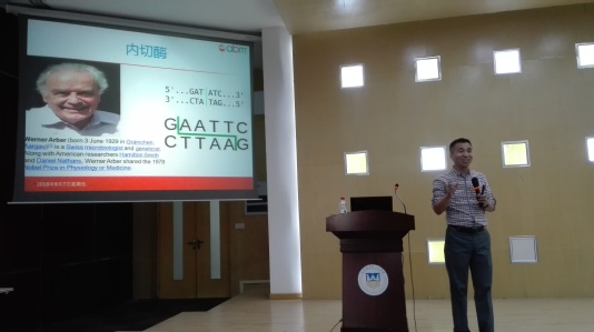 首先,李沛祥博士对爱必梦生物科技有限公司的情况作了简要介绍,其次针对生物领域比较热门的技术“基因工程”和“细胞工程”做了详细生动的展示。从双螺旋结构的提出到基因治疗,从内切酶的发现、作用到其应用,从Sanger测序到人类基因组计划,Hela细胞、多莉羊、单克隆抗体技术, 李沛祥博士用生动的语言和大量近代发生的、大家熟知的科学家和生物科技事件,与现代生活、医学治疗紧密结合,给大家展示了生物科技的魅力及其用途。未来生物科技将在精准医疗、干细胞等多个领域继续飞速发展,发挥强大作用。
