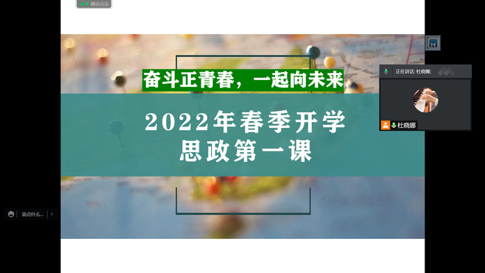 春光明媚诗书香,正是少年读书时。3月2日,发酵工程教研室杜晓娜老师通过腾讯会议为金年会2021级生物工程专业98班学生开展了春季开学思政第一课活动。杜老师以“奋斗正青春,一起向未来”为主题,向学生们讲授了生命科学领域科学家孜孜不倦探索生命奥秘的诸多事迹,展现了科学家投身科研,永不言弃的意志品质。同时勉励同学们要珍惜韶华、奋发有为,锻造勇担使命的思想觉悟,提升自我学习能力,练就过硬技术技能,奔想更加美好的赴未来。