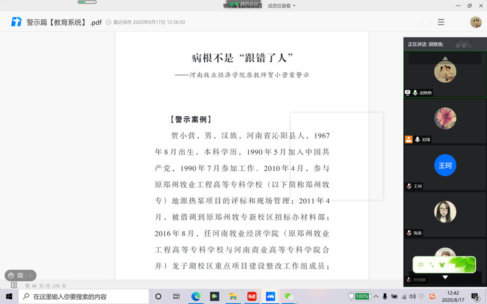 深化以案促改,是一体推进“不敢腐、不能 腐、不想腐”的有力抓手开了,是坚持标本兼治,将反腐倡廉工作引向深入的重要举措。2020年8月17日,jinnianhui金年会诚信至上发酵与细胞工程党支部在腾讯会议召以案促改学...
