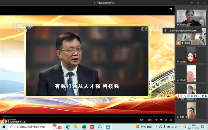 11月11日上午,jinnianhui金年会诚信至上党总支理论学习中心组在企业微信进行11月份政治理论学习,会议由党总支书记关海燕主持,采用领学和专题视频学习的形式进行,党总支理论学习中心组全体成员参加。会议首先进...