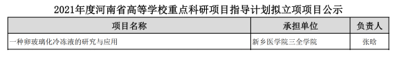 近日,河南省科技厅发布了《2021年度河南省高等学校重点科研项目计划拟立项项目公示》,金年会张晗老师申报的《一种卵玻璃化冷冻液的研究与应用》获批2021年度河南省高等学校重点项目指导计划。近年来,金年会...