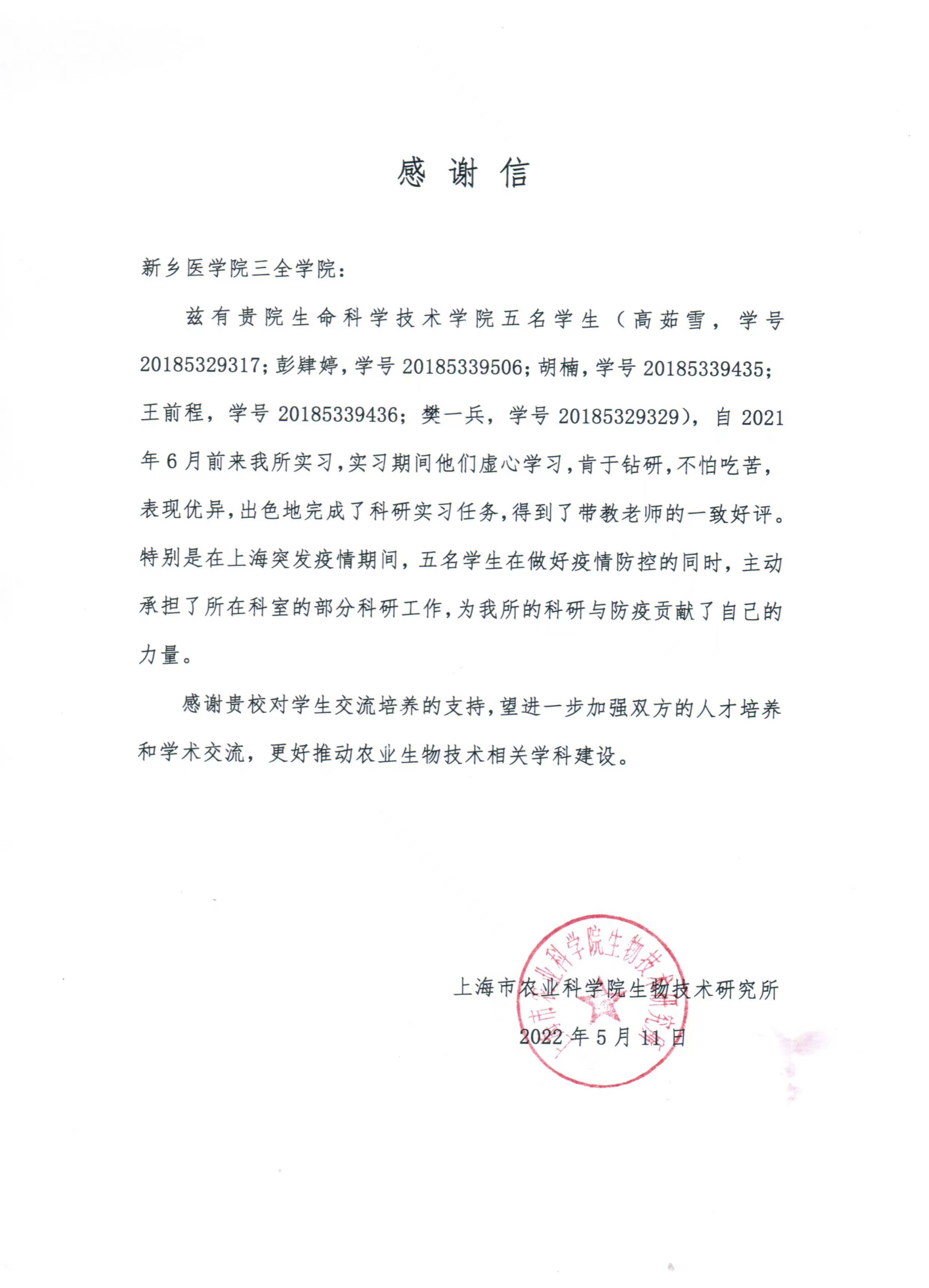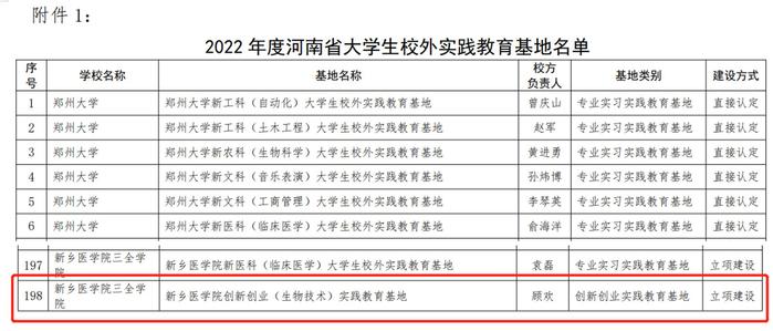 2022年11月22日,河南省教育厅发布《河南省教育厅关于公布2022年度本科高校大学生校外实践教育基地和2020年度立项建设基地验收认定名单的通知》教高[2022]358号。jinnianhui金年会诚信至上生物技术专业被直接认定...